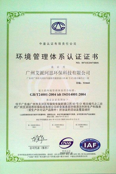 广州 IPAX ISO-14001 认证